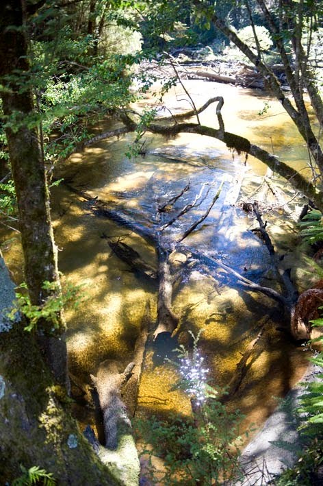 Remember that once you leave Garnock Burn, there is no trail. We found the river and began following it up. The good thing about this route was that we were able to see where we were going a lot of the time, even Titiroa herself at some points, whereas on our initial journey we were in dense forest until the top. The going was ok; we were carrying a good deal of gear, Liesbet probably about 20 kgs and me probably about 35 kgs or so, including still and video cameras. The other good thing about going this way was that we didn’t have to carry much weight in water, as it was flowing right beside us the whole way.